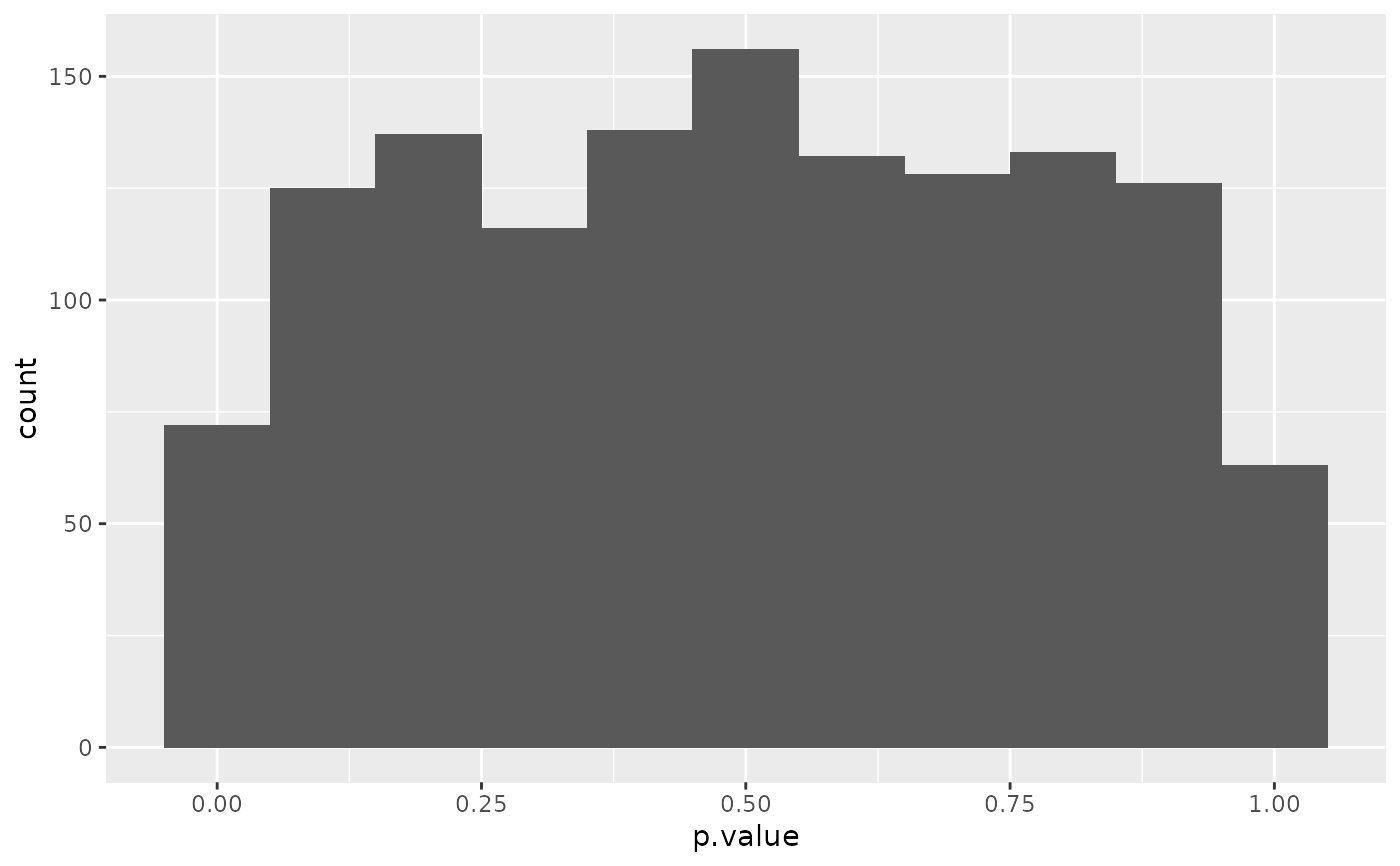 #>#> #>#> #> #>#> #> #>#> #> #>#> #> #>#> #> #>#> #> #>mat <- replicate(52, rnorm(100)) # add some NAs mat[sample(length(mat), 2000)] <- NA # also column names colnames(mat) <- c(LETTERS, letters) rc <- rcorr(mat) td <- tidy(rc) td#> # A tibble: 1,326 x 5 #> column1 column2 estimate n p.value #> <chr> <chr> <dbl> <int> <dbl> #> 1 B A 0.0670 36 0.698 #> 2 C A 0.196 38 0.239 #> 3 C B 0.172 37 0.309 #> 4 D A -0.0397 36 0.818 #> 5 D B -0.00762 31 0.968 #> 6 D C 0.250 42 0.110 #> 7 E A 0.224 36 0.189 #> 8 E B 0.0700 35 0.690 #> 9 E C 0.211 46 0.159 #> 10 E D 0.147 40 0.364 #> # … with 1,316 more rows