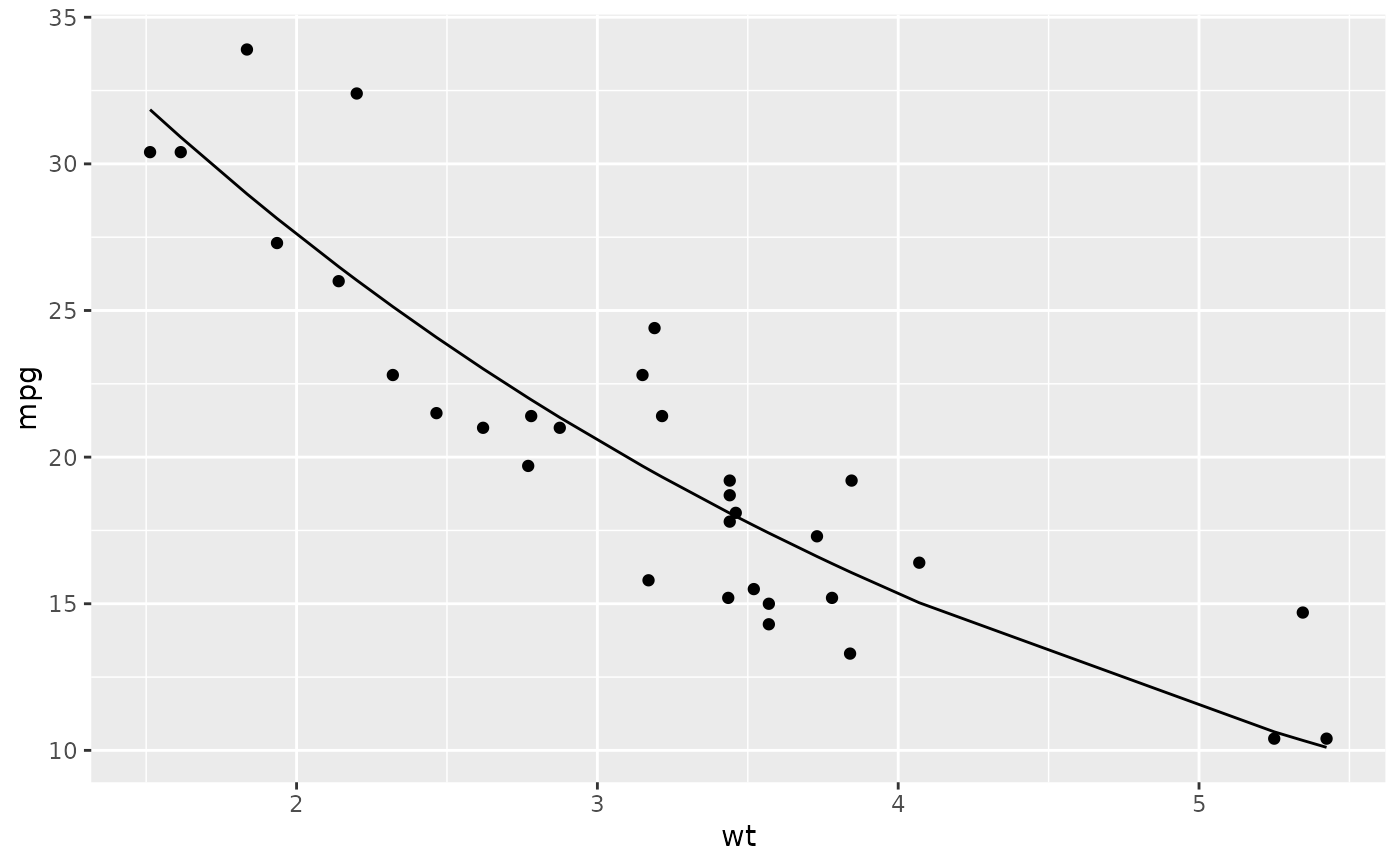 n <- nls(mpg ~ k * e^wt, data = mtcars, start = list(k = 1, e = 2))