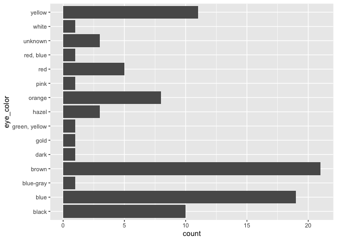 ggplot(starwars, aes(x = eye_color)) + geom_bar() + coord_flip()