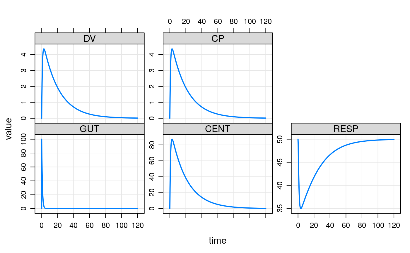 mod <- mrgsolve::house() %>% ev(amt = 100) out <- mrgsim(mod) out_df <- dplyr::mutate(out, time <= 72) plot(out)