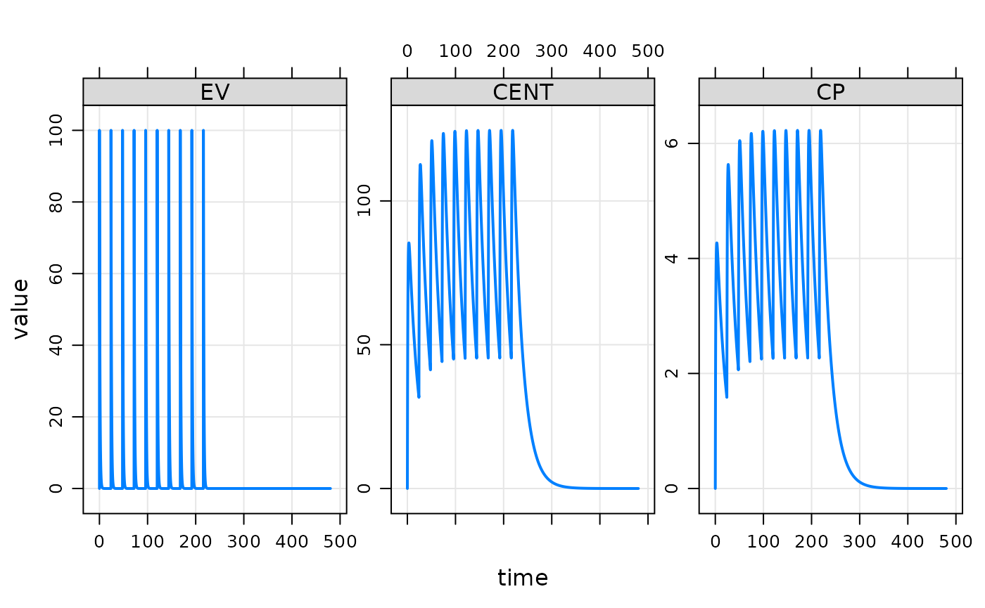 evnt <- ev(amt = 100, ii = 24, addl = 9)