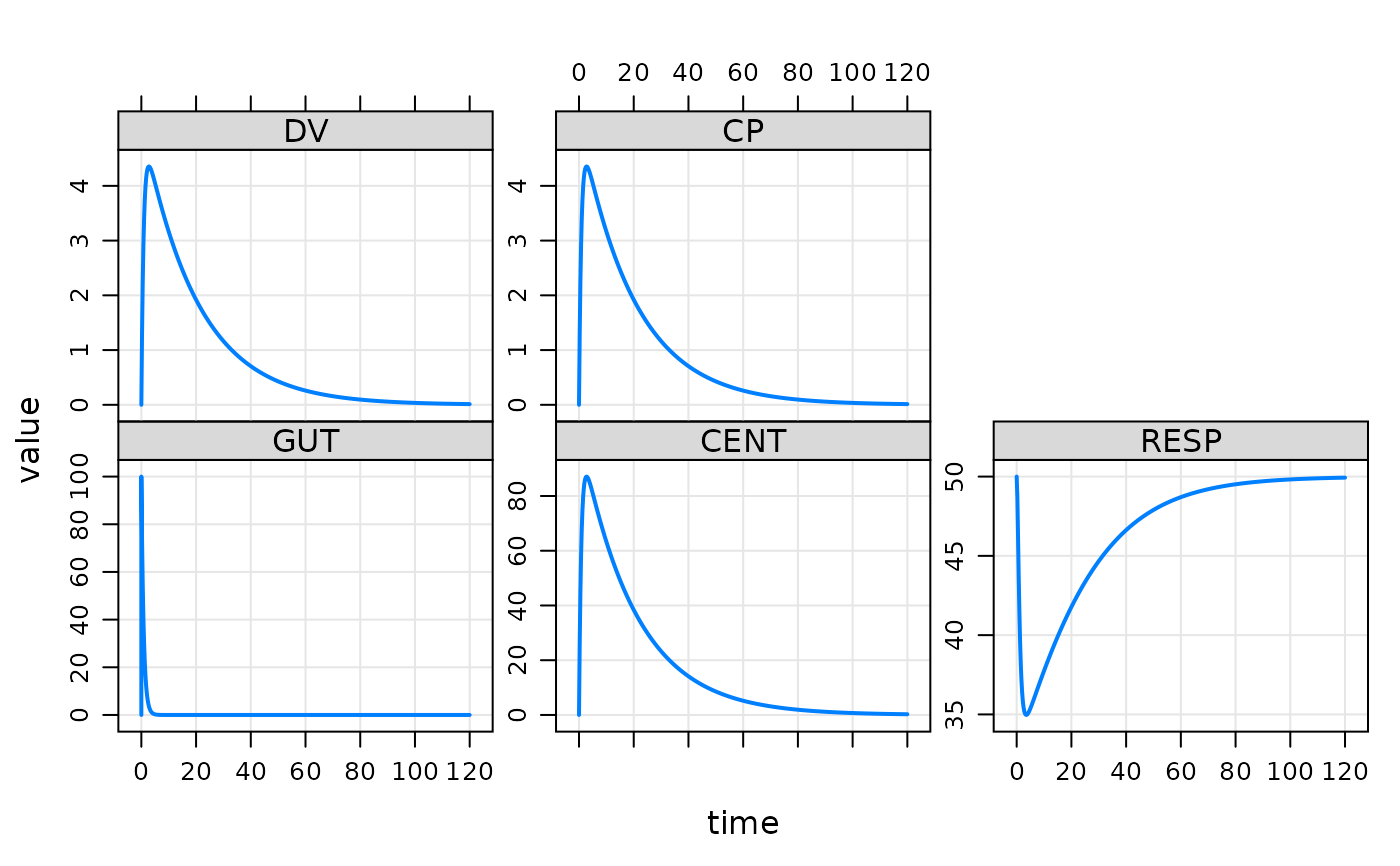 mod %>% ev(amt=100) %>% mrgsim %>% plot