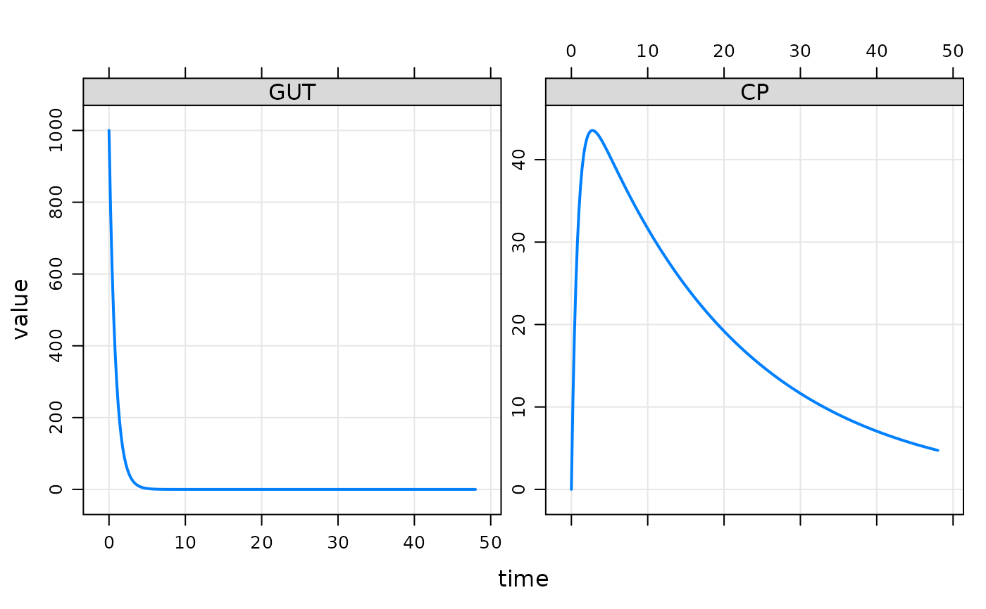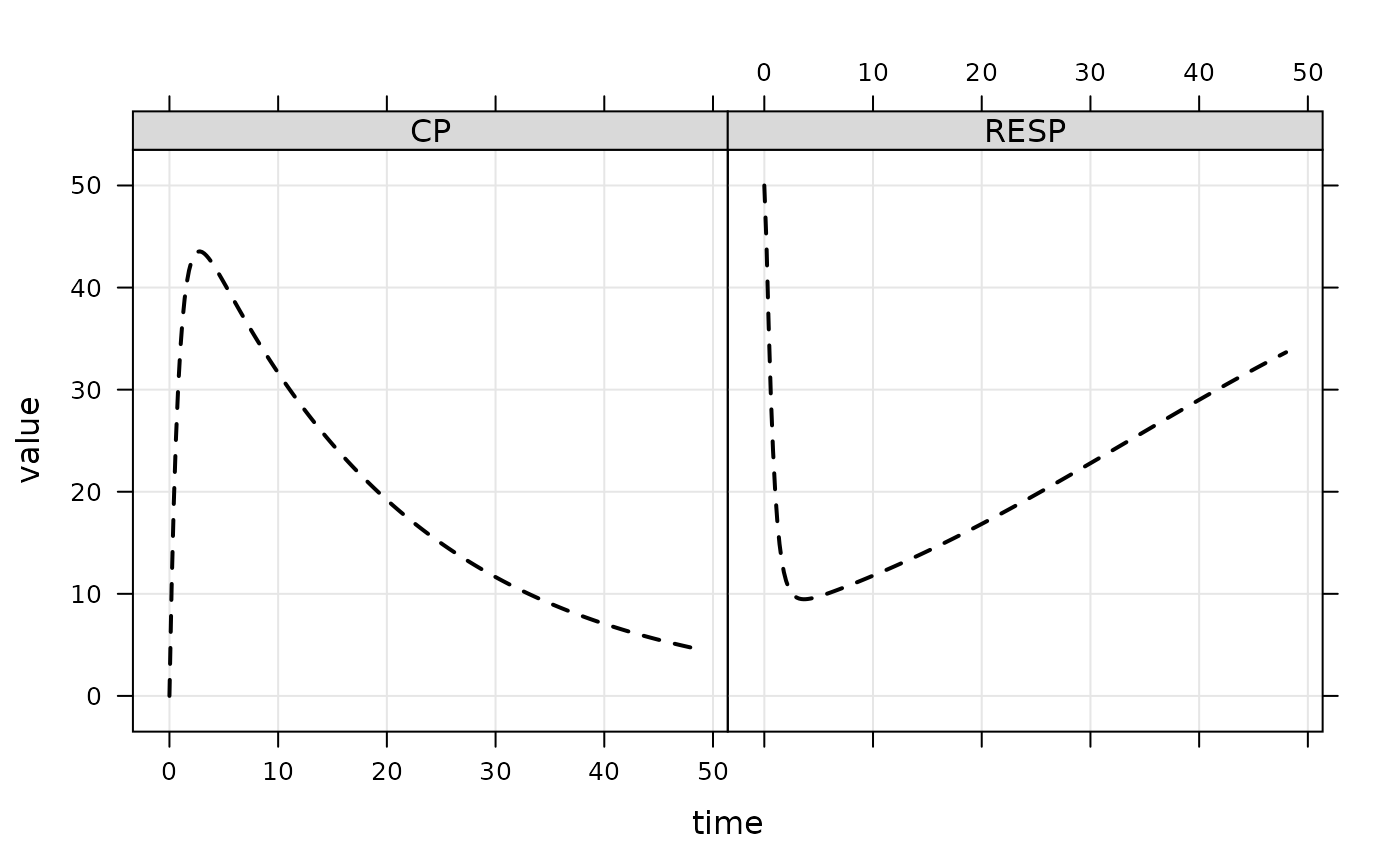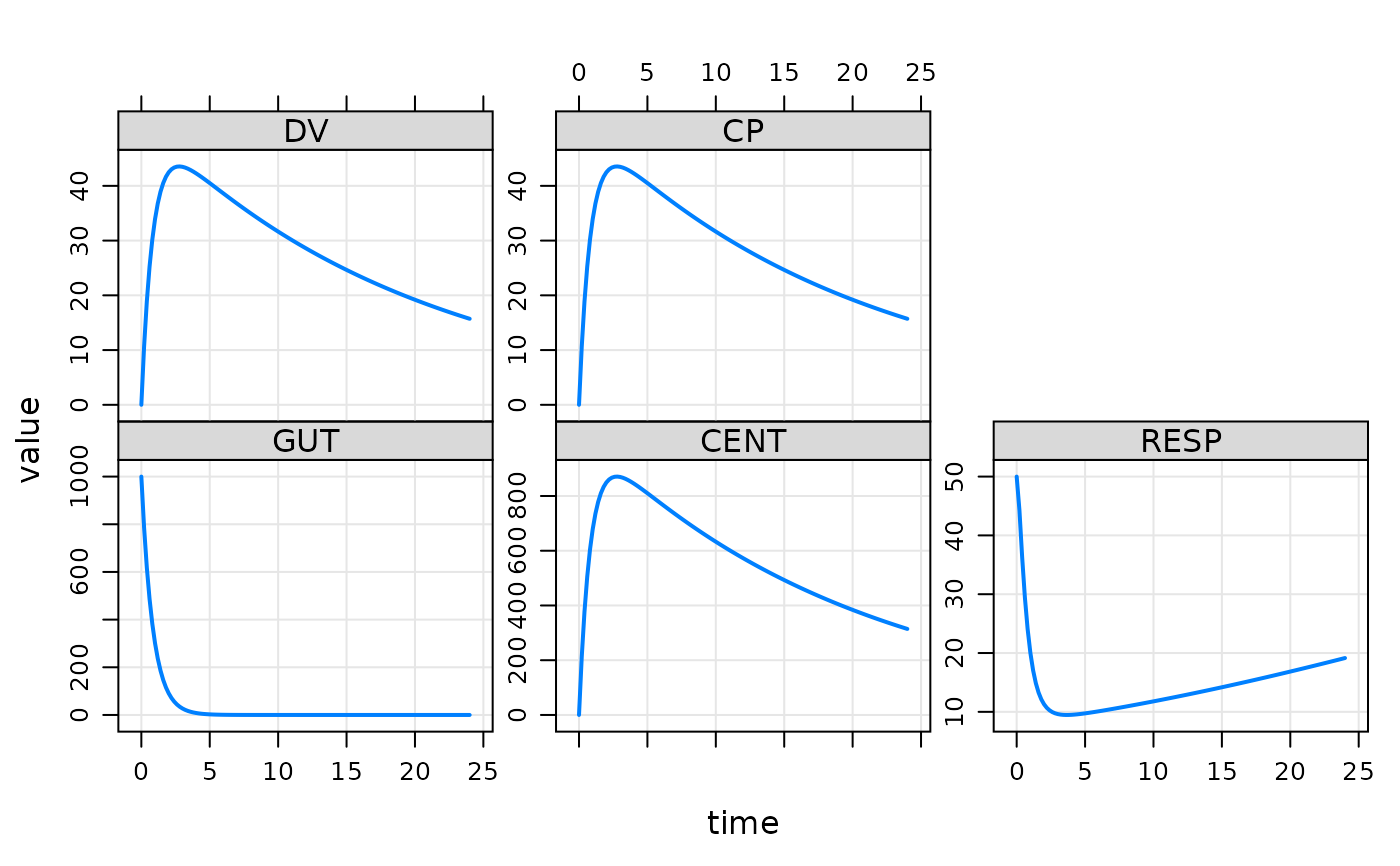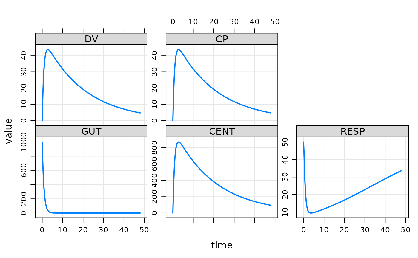 # S4 method for mrgsims,missing plot(x, limit = 16, ...) # S4 method for mrgsims,formula plot( x, y, limit = 16, show.grid = TRUE, outer = TRUE, type = "l", lwd = 2, ylab = "value", groups = ID, scales = list(y = list(relation = "free")), logy = FALSE, logbr = 1, ... ) # S4 method for mrgsims,character plot(x, y, ...)