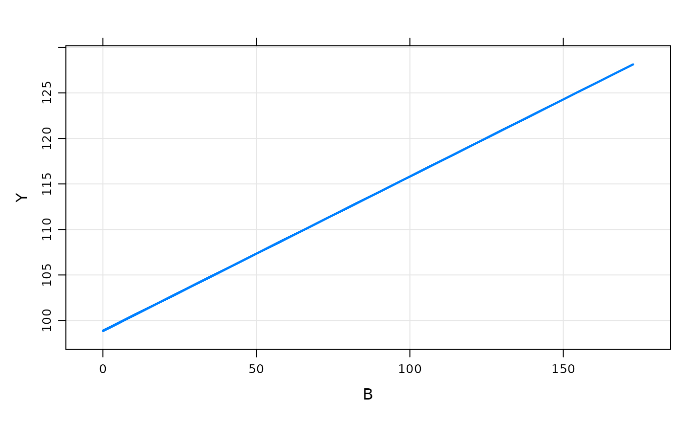 capture Y = beta0i + beta1i*B;This is a random-intercept, random slope linear model. Like other models in mrgsolve, you can write parameters ($PARAM), and random effects ($OMEGA). But the model is actually written in $PRED.