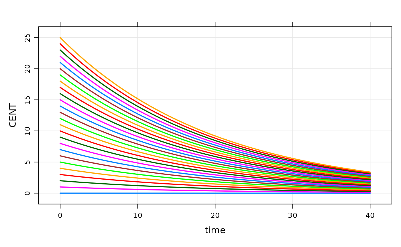 mod <- mcode("init_long2", code)The initial condition is set to 40 per the values of KIN and KOUT