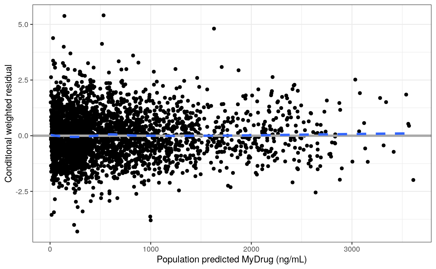 res_pred(df, x = pm_axis_pred(), y = pm_axis_res(), xname = "value", xs = defx(), ys = defy(), ...) wres_pred(df, ..., y = pm_axis_wres()) cwres_pred(df, ..., y = pm_axis_cwres()) cwresi_pred(df, y = pm_axis_cwresi(), ...) npde_pred(df, ..., y = pm_axis_npde(), hline = npde_ref())