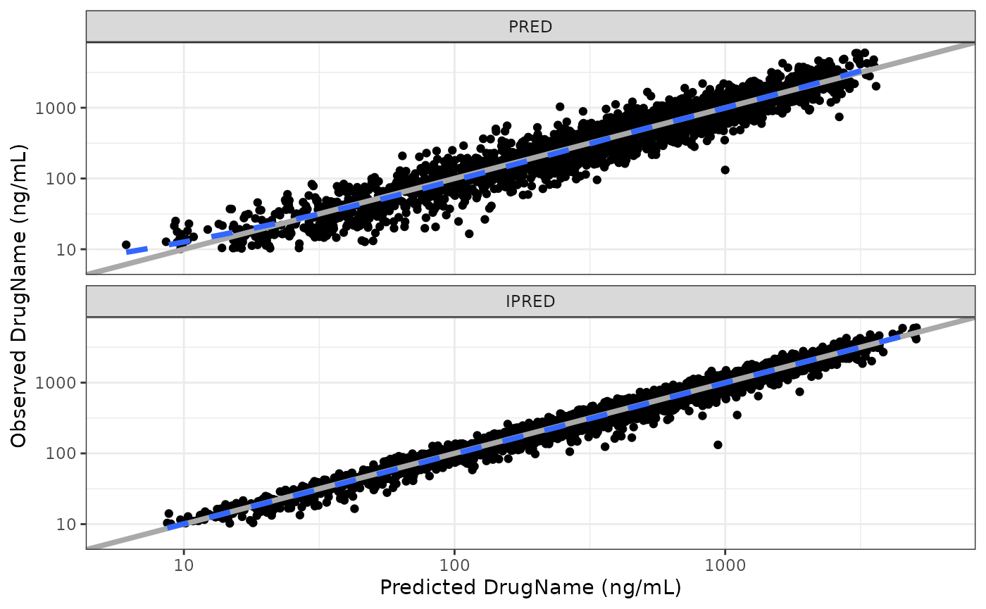 wrap_dv_preds(data, loglog = TRUE, ncol = 1, yname = "DrugName (ng/mL)")## `geom_smooth()` using formula 'y ~ x'