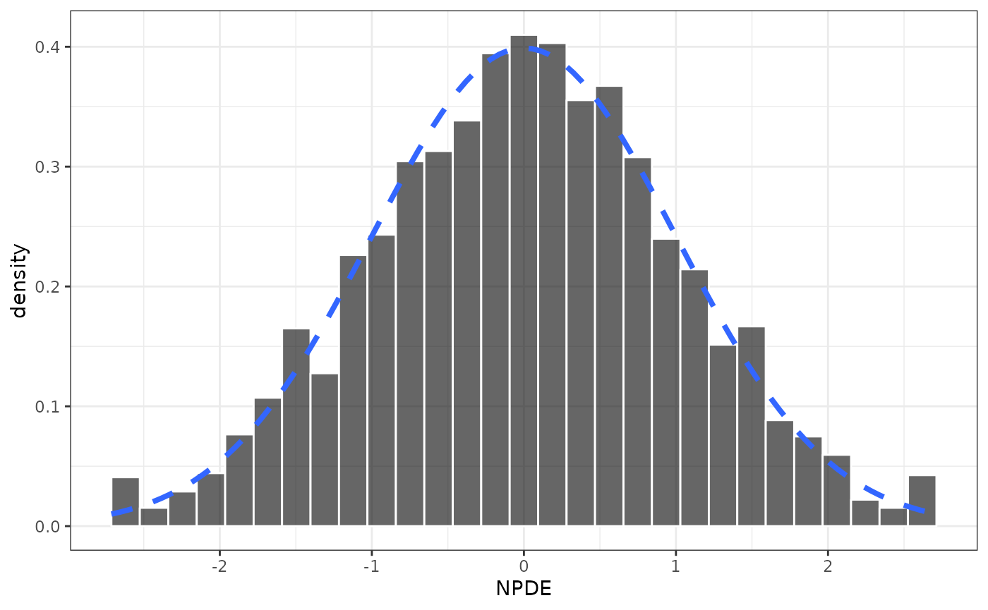 npde_hist(data)## `stat_bin()` using `bins = 30`. Pick better value with `binwidth`.