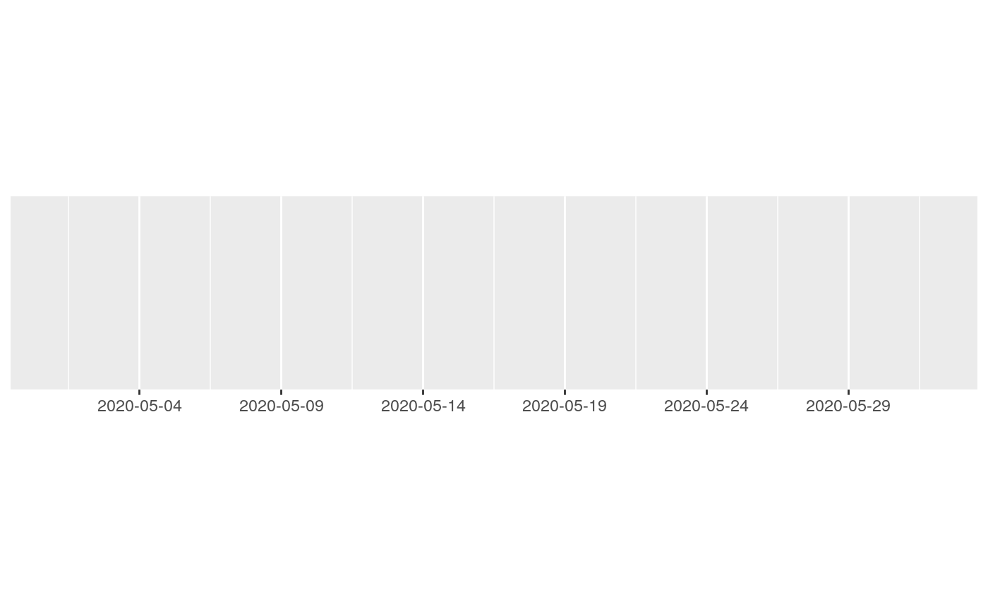 #> scale_x_continuous()#> scale_x_continuous(breaks = breaks_width(10))#> scale_x_continuous(breaks = breaks_width(20, -4))#> scale_x_continuous(breaks = breaks_width(20, 4))# This is also useful for dates one_month <- as.POSIXct(c("2020-05-01", "2020-06-01")) demo_datetime(one_month)#> scale_x_datetime()#> scale_x_datetime(breaks = breaks_width("1 week"))#> scale_x_datetime(breaks = breaks_width("5 days"))# This is so useful that scale_x_datetime() has a shorthand: demo_datetime(one_month, date_breaks = "5 days")#> scale_x_datetime(date_breaks = "5 days")