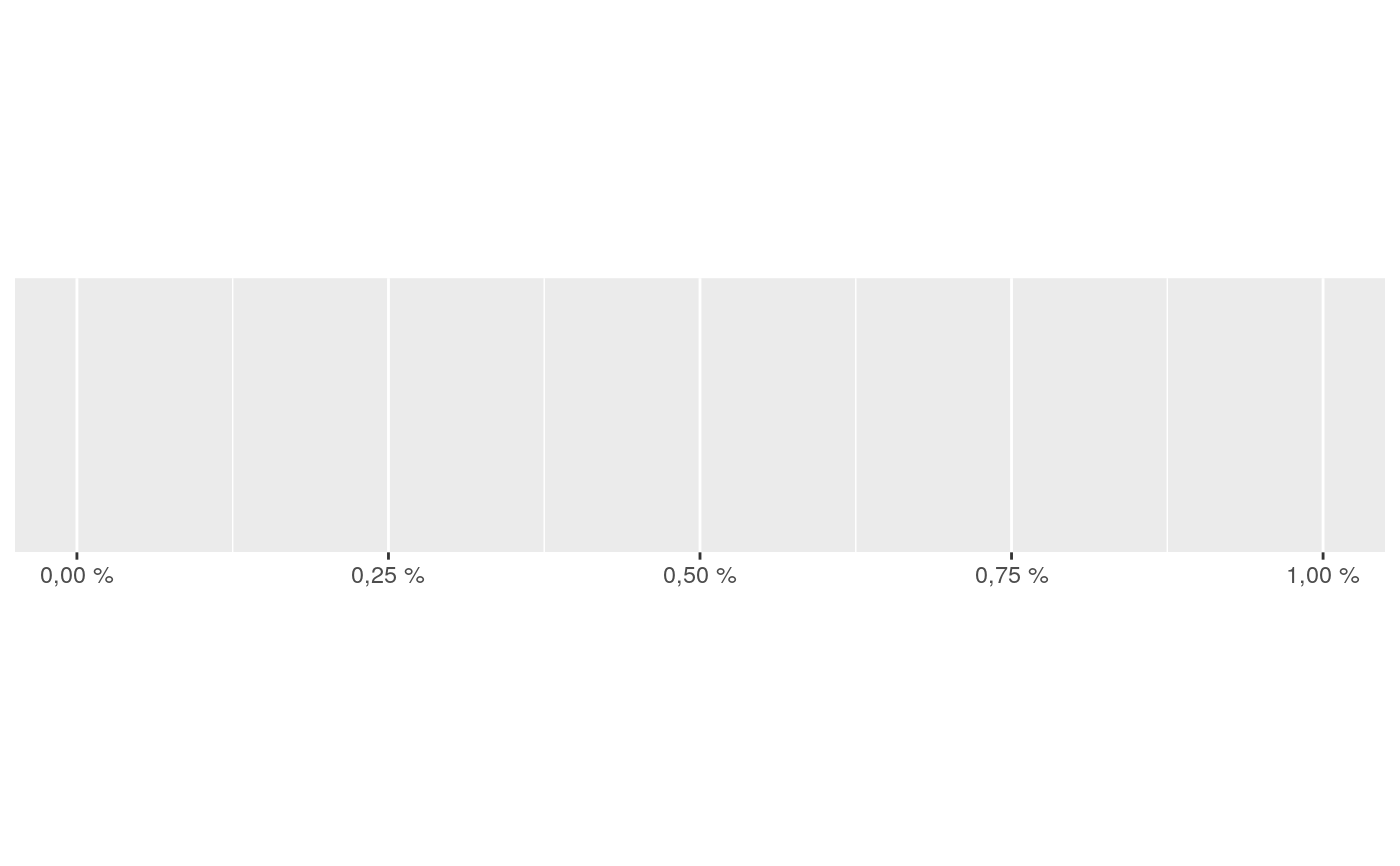#> scale_x_continuous()#> scale_x_continuous(labels = label_percent())# Use prefix and suffix to create your own variants french_percent <- label_percent( decimal.mark = ",", suffix = " %" ) demo_continuous(c(0, .01), labels = french_percent)#> scale_x_continuous(labels = french_percent)