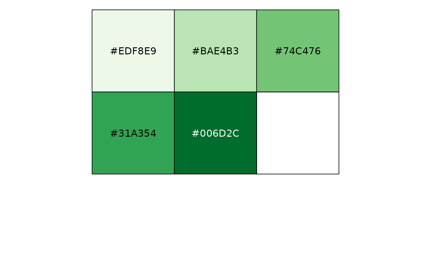 brewer_pal(type = "seq", palette = 1, direction = 1)One of "seq" (sequential), "div" (diverging) or "qual" (qualitative)