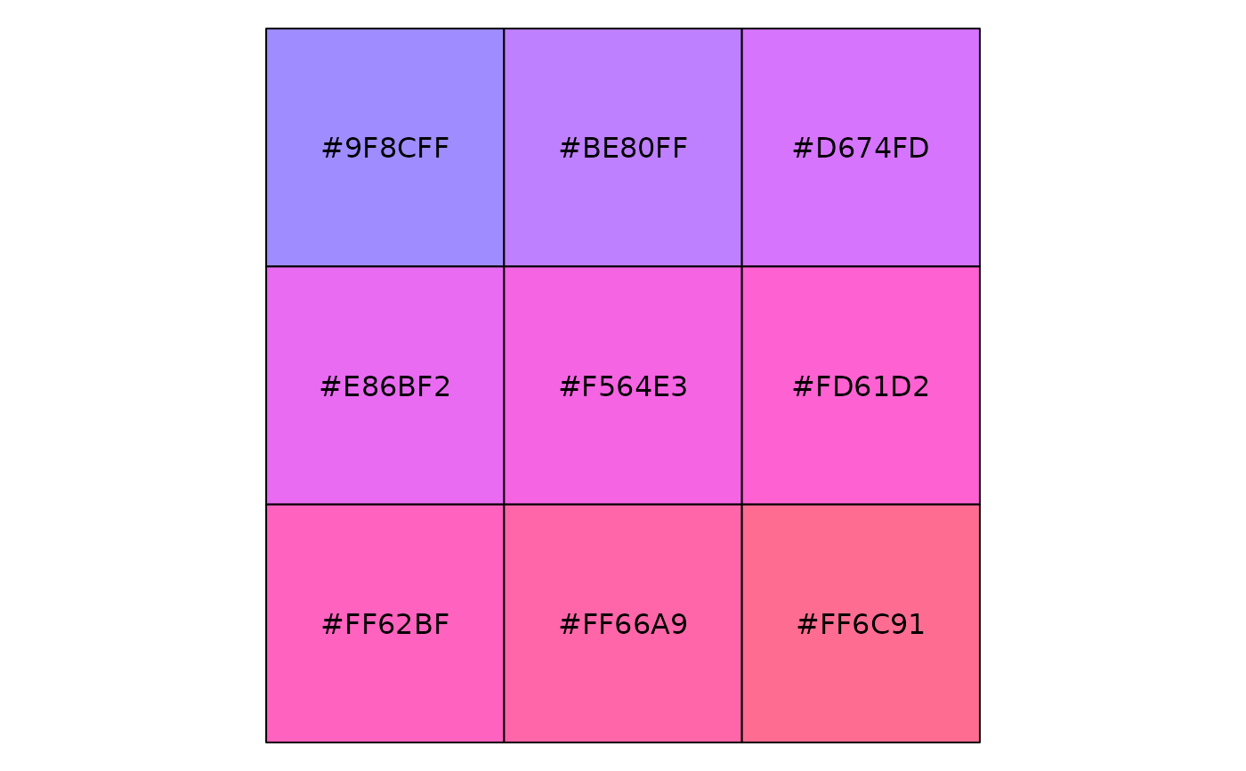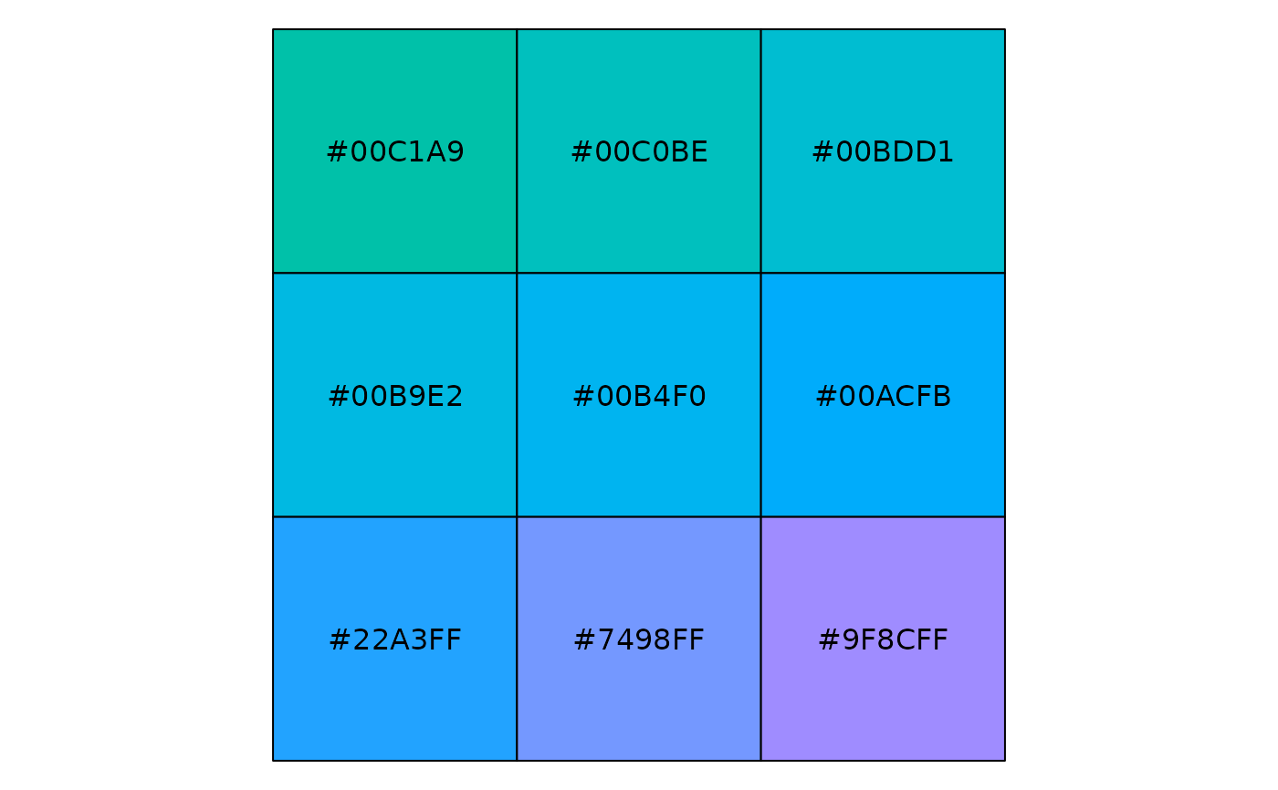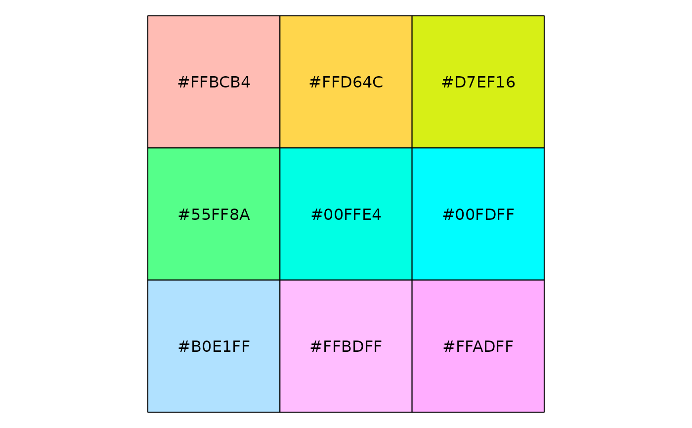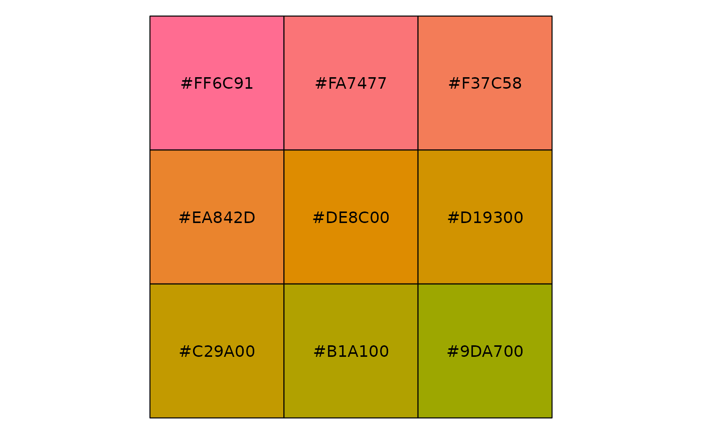 hue_pal(h = c(0, 360) + 15, c = 100, l = 65, h.start = 0, direction = 1)range of hues to use, in [0, 360]